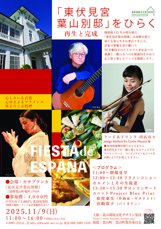 来年築110年を迎える葉山に現存する最後の宮家別邸にて建物内外・周辺のご案内、パネルディスカッションや展示等を通して、別邸の歴史や国登録有形文化財に指定された建築物としての価値、東伏見宮依仁親王・周子妃の地域との交流等を楽しく紐解きます。